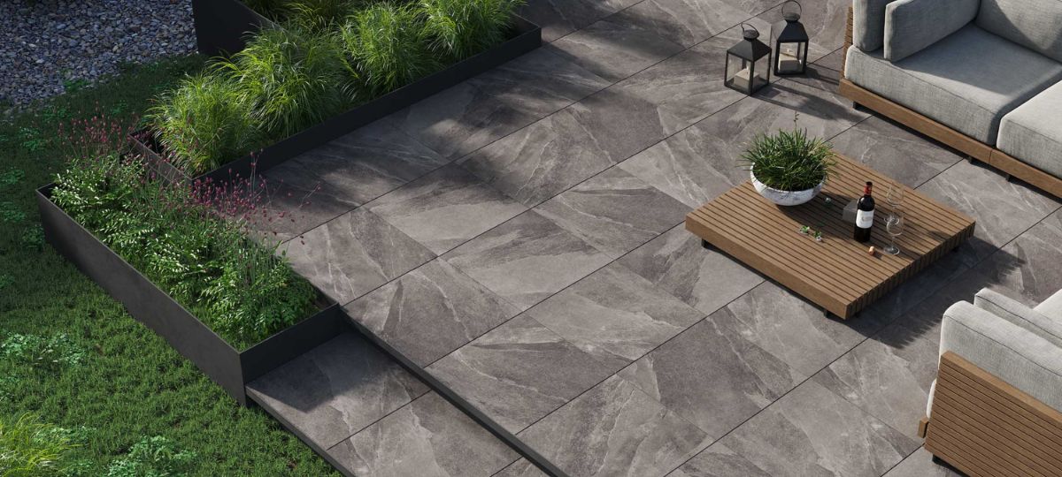 Керамогранит идеально подходит для внешнего и внутреннего применения — террас, садовых дорожек, коммерческих зон и любых других пространств, где важны прочность и стиль. Поверхность плит тщательно проработана, чтобы передать естественное разнообразие каменной структуры.