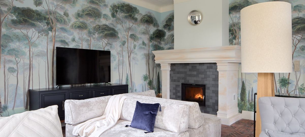 Основное помещение было решено в классическом стиле. В качестве центрального декоративного элемента в интерьер включили каминную зону, для отделки которой использовали нашу мозаику Луна в оттенке 04 и Терра в оттенке 04 Брикс Биг.