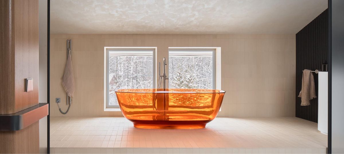 В интерьере, вдохновленном экзотическими отелями, дизайнеру удалось создать атмосферу полного расслабления. Просторная двуспальная кровать, отдельно стоящая ванна из красного стекла, а также теплые оттенки терракотового и винного цвета в сочетании с нейтральными серым, белым и черным сделали пространство уютным и стильным.