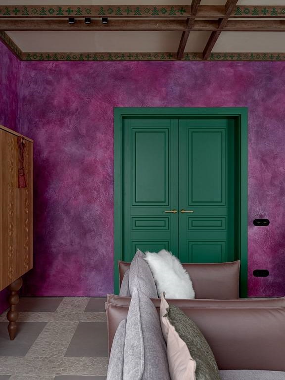 - Этот же материал применили и для подоконников — решение не только эстетичное, но и практичное, позволяющее сохранить визуальное единство интерьера.