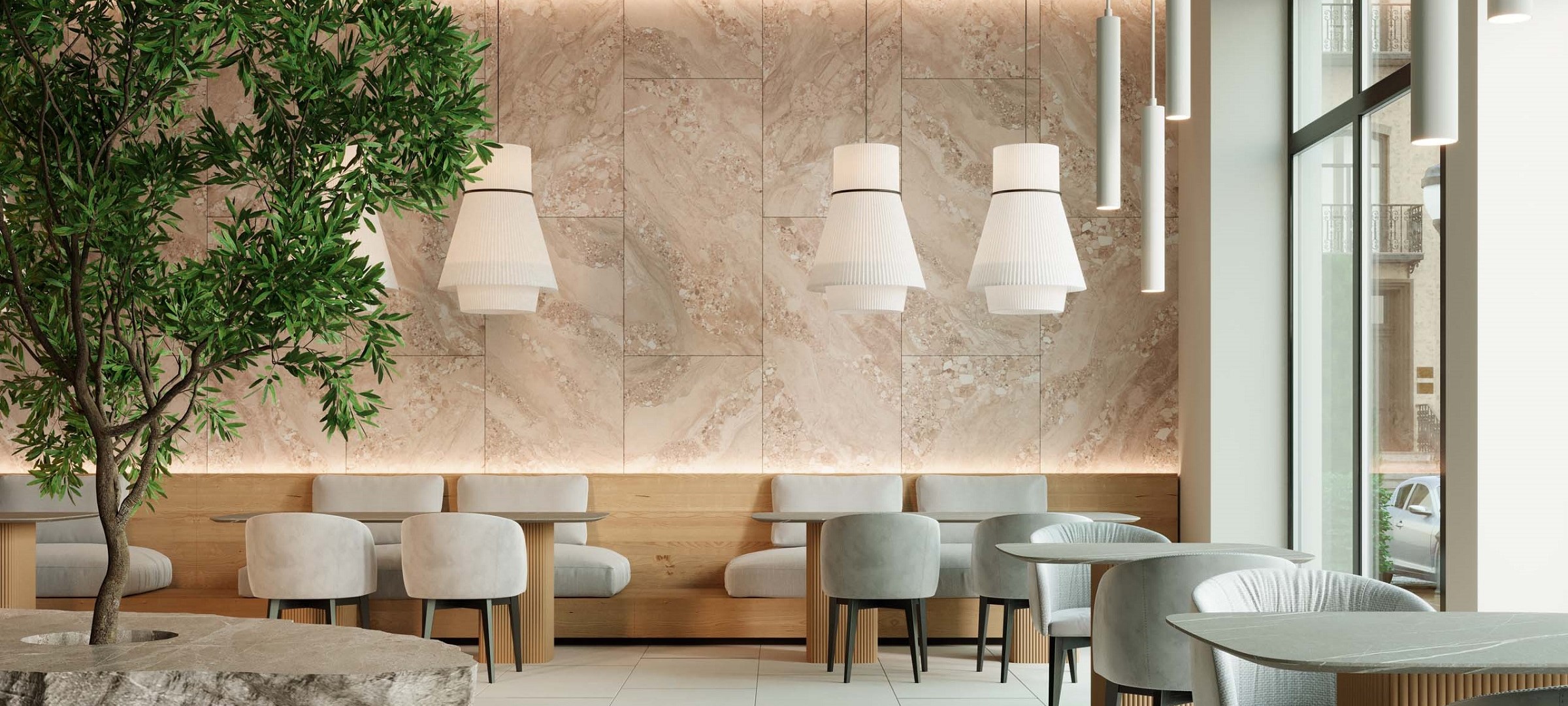 Керамогранит "Оушенмист" — коллекция, вдохновленная красотой и величием бескрайних водных просторов. Поверхность материала имитирует микс камня и мрамора, создавая текстуру, напоминающую пенный след от океанских волн. Каждый дизайн в этой коллекции выглядит так, будто он был создан самой природой, и отражает ее многогранность. Каждый цвет создает свою уникальную атмосферу: теплый, светло-серый напоминает об обрывистых скалах, песочный — о нежных оттенках заката, а коричневый — о мокром песке на берегу.